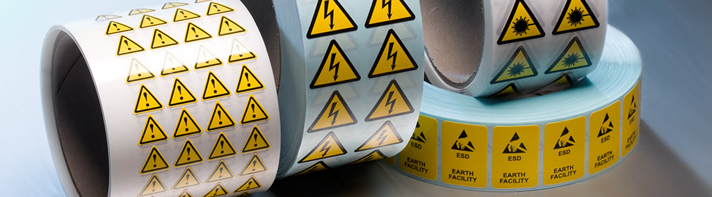 Electrotechnical warning labels as well as chemical warning labels are part of our stock range. If the standard designs are not suitable for your application we’ll be happy to print you customized warning labels to meet any specific needs. All the labels we supply to the electronics and electrical industry are manufactured in compliance with the EU’s RoHS Directive. We also print UL approved warning labels.